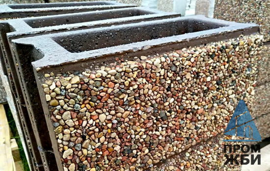 Производство и заказБлоки из мытого бетона мы изготавливаем на современном оборудование из высококачественного сырья. Технология производства подобных изделий основана на вымывании верхнего слоя цемента и мелкофракционных наполнителей (намывной песок) на глубину от 2 до 5 мм. В результате наполнители более крупной фракции выступают над основной поверхностью, формируя фактуру и снижая скольжение. Основные характеристики бетона для блоков: